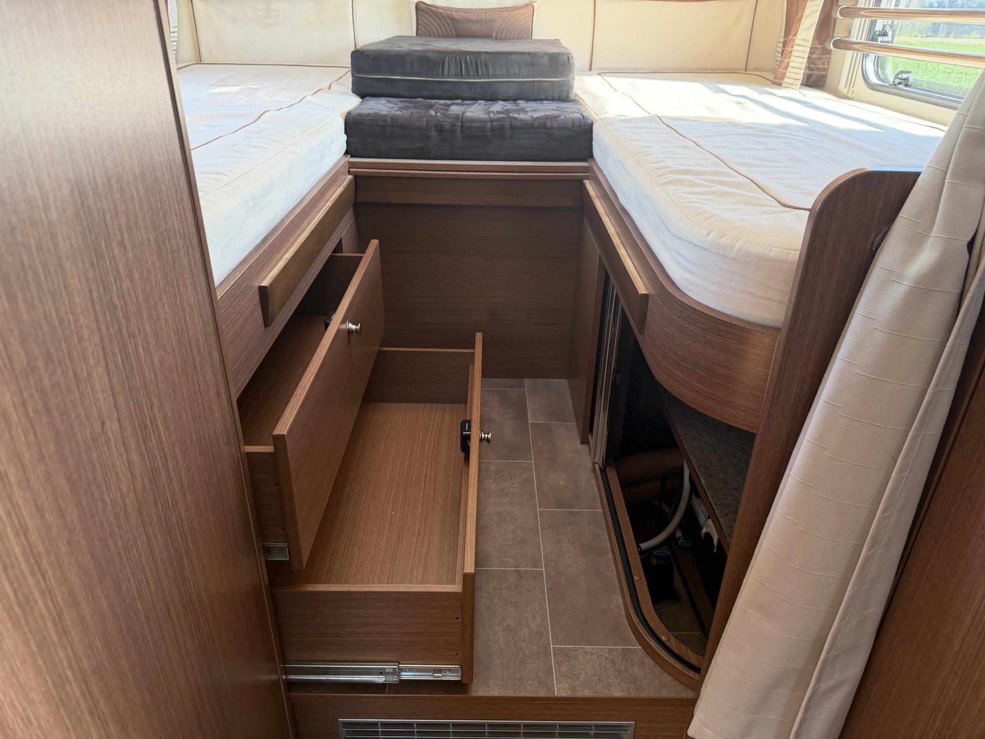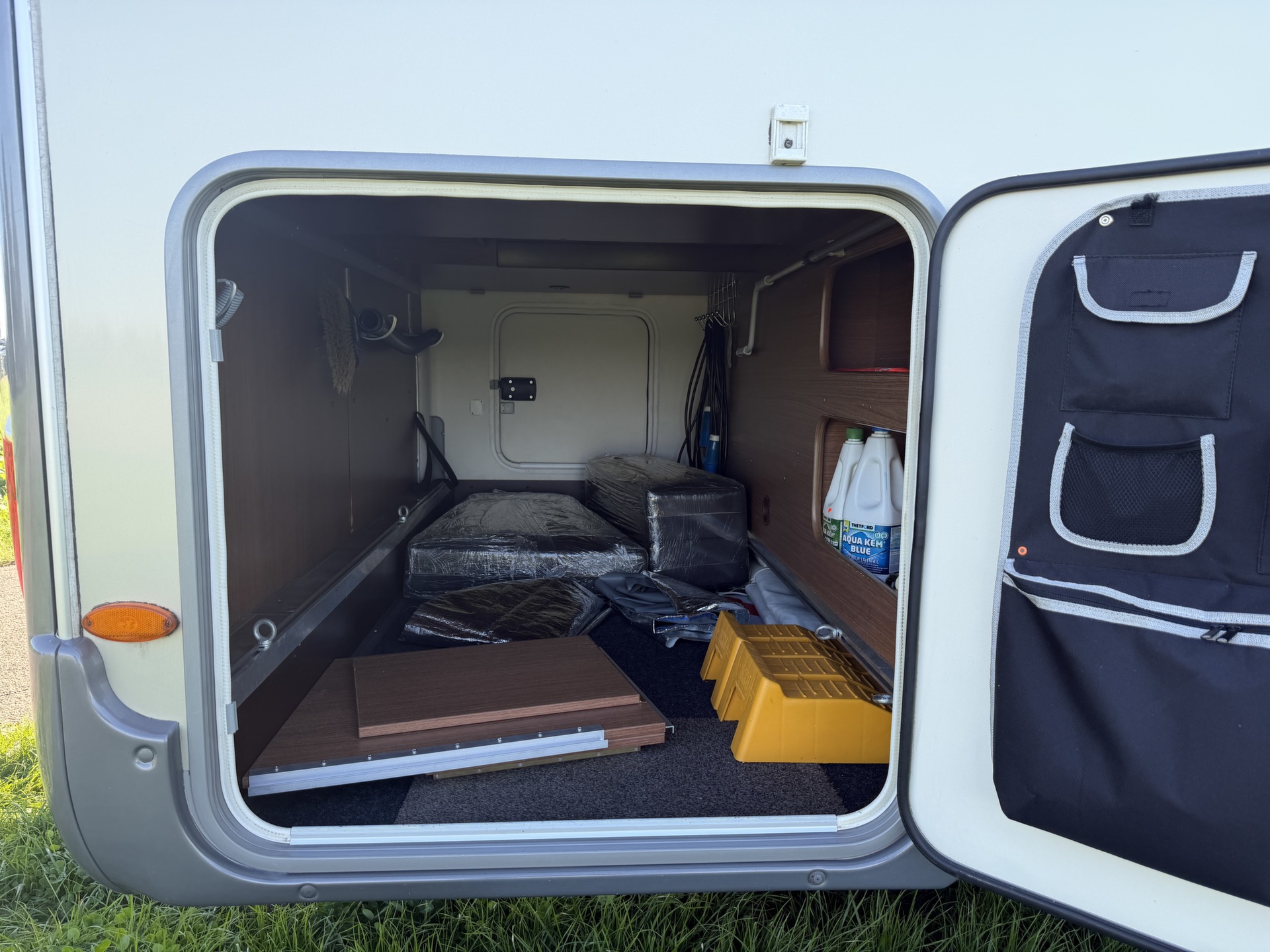 zich een garage en ook rond de camper bevindt zich veel opbergruimte doormiddel