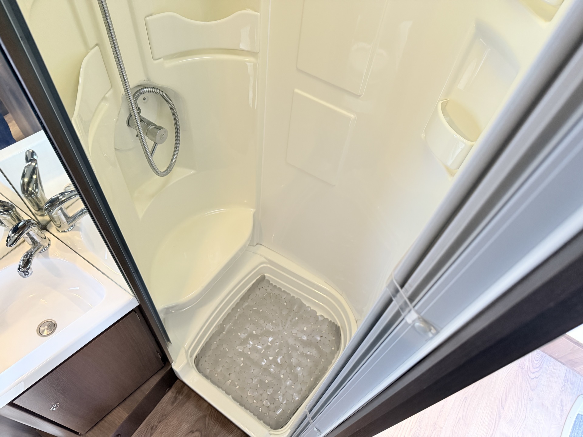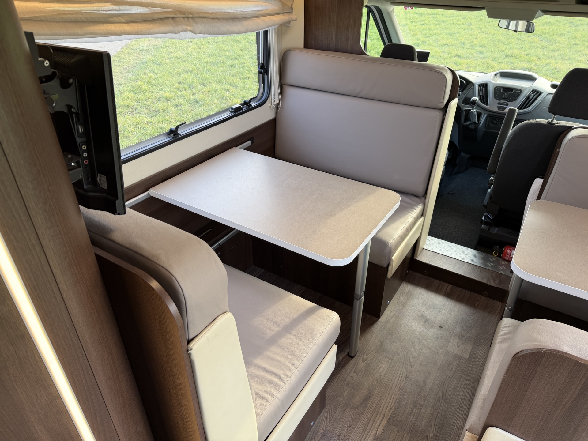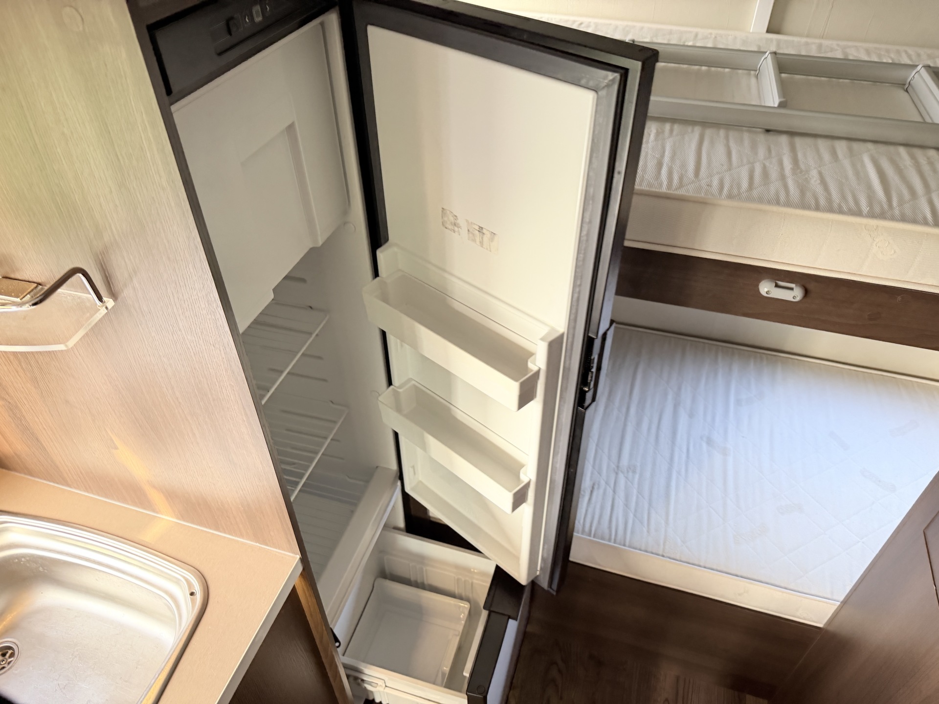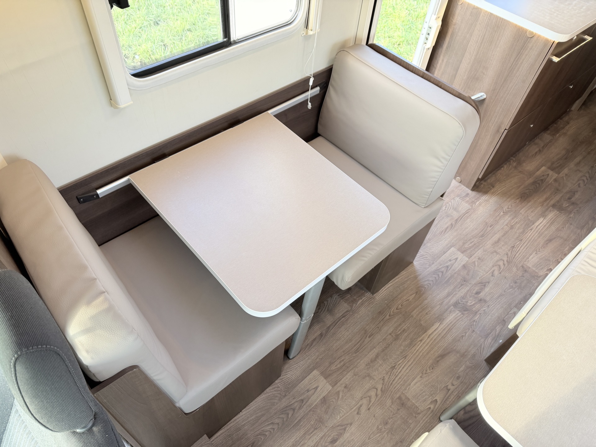 Met fijne extra opties als airco, cruise control, XL koelkast, achteruitrijcamera, draaibare voorstoel