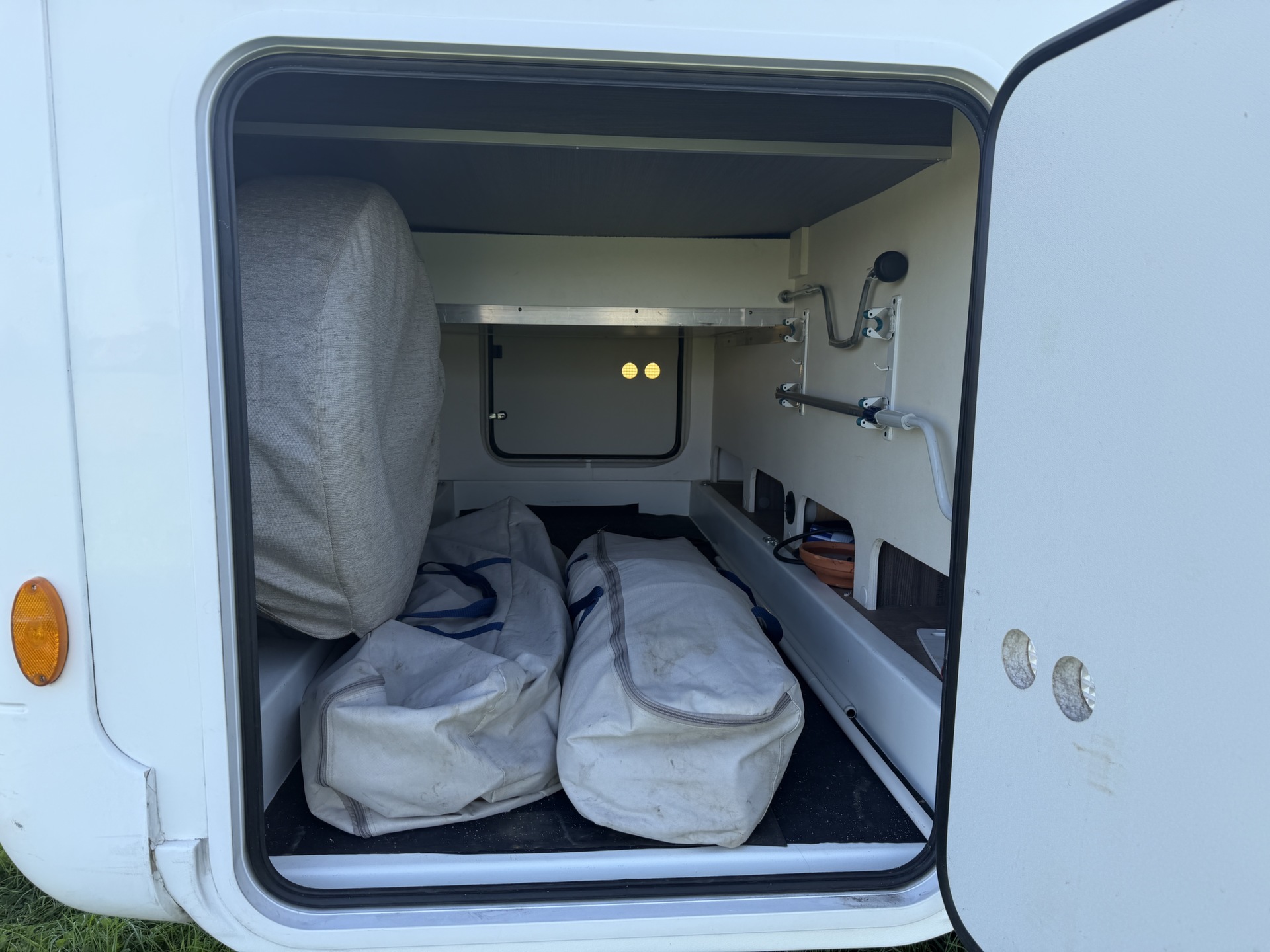 opbergruimte, ook doormiddel van een garage, en ook rond de camper bevindt