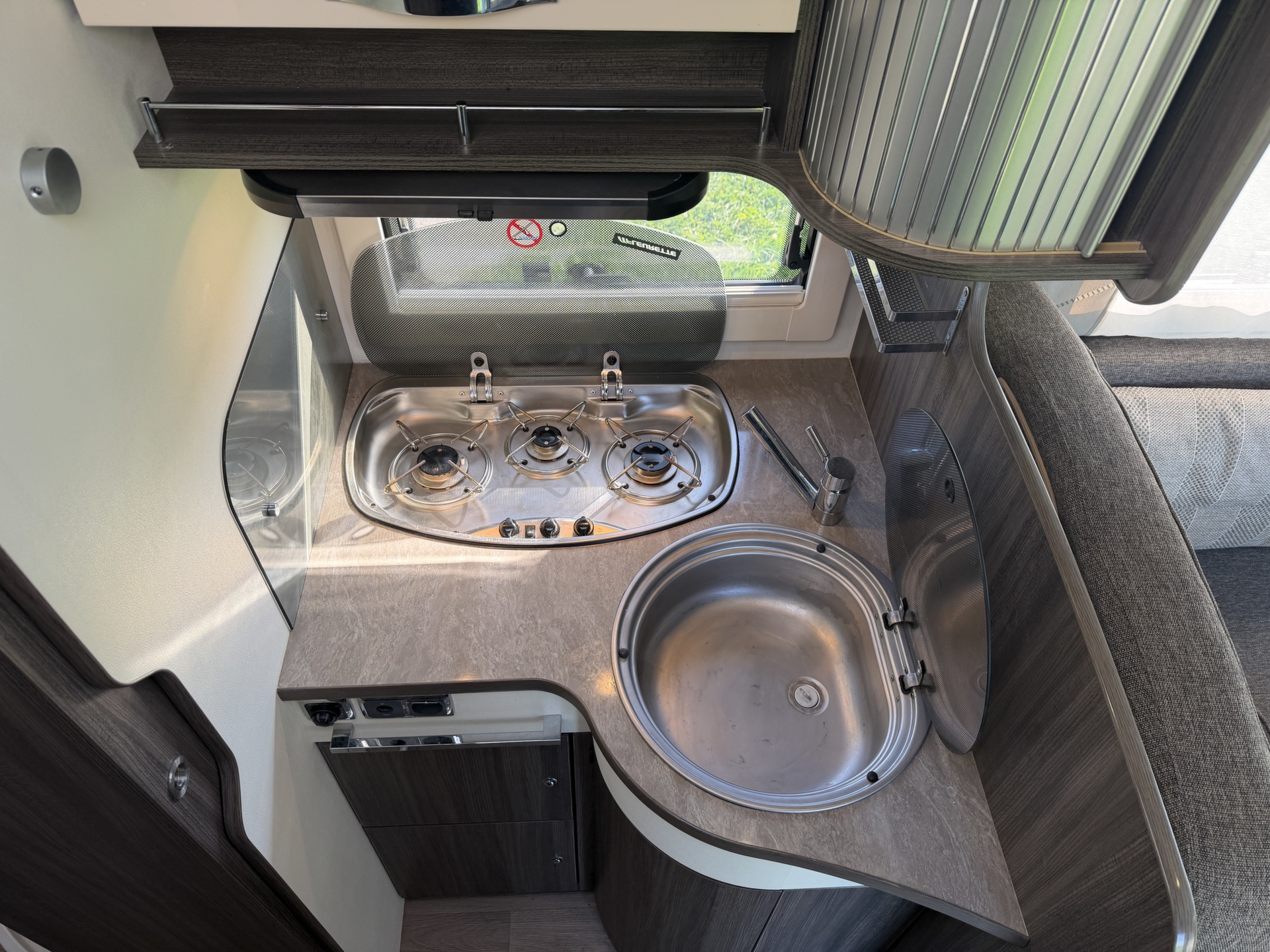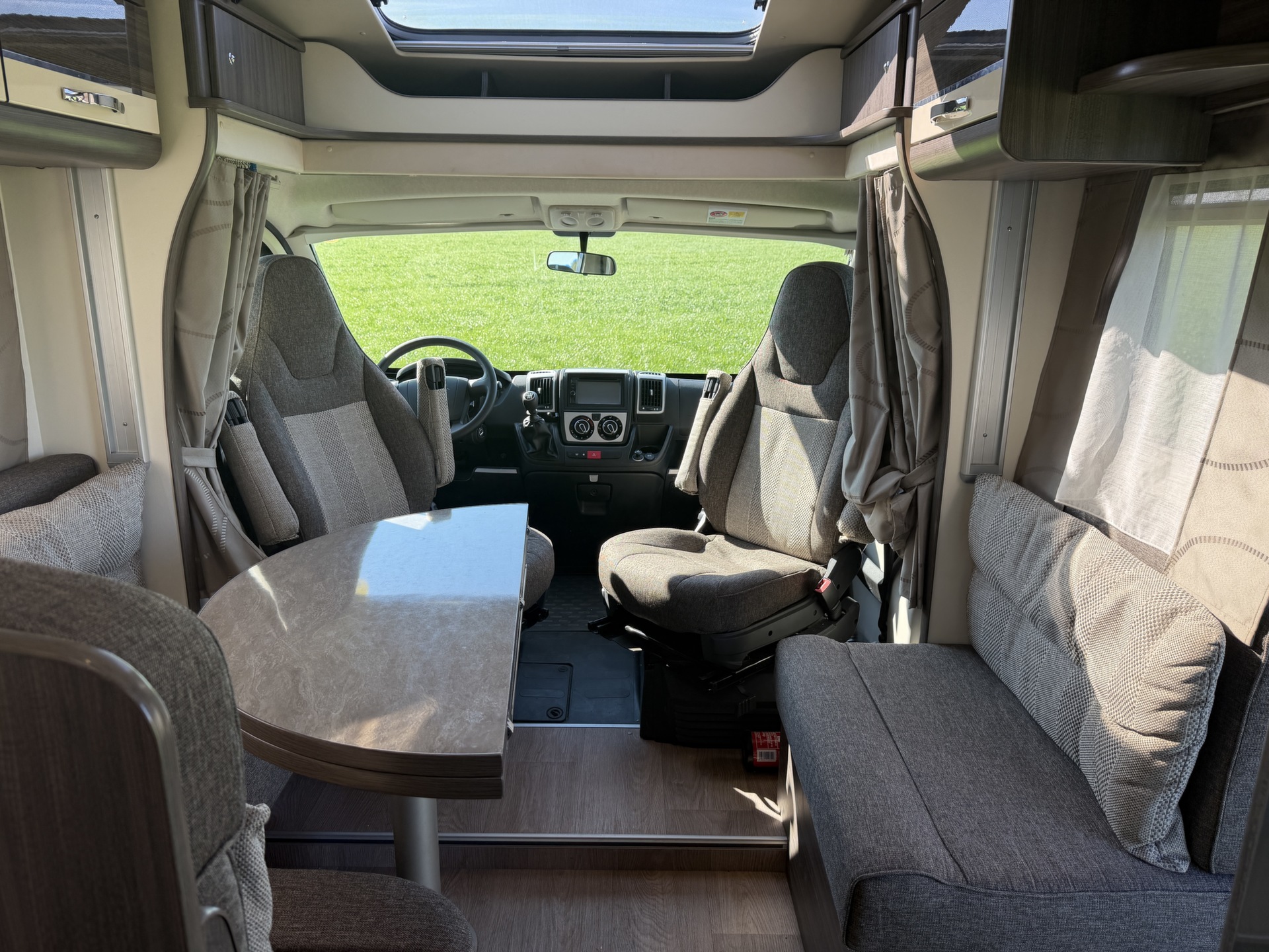 (pilotenstoelen), camera, zonnepaneel, XL koelkast, trekhaak, pliche gordijnen
