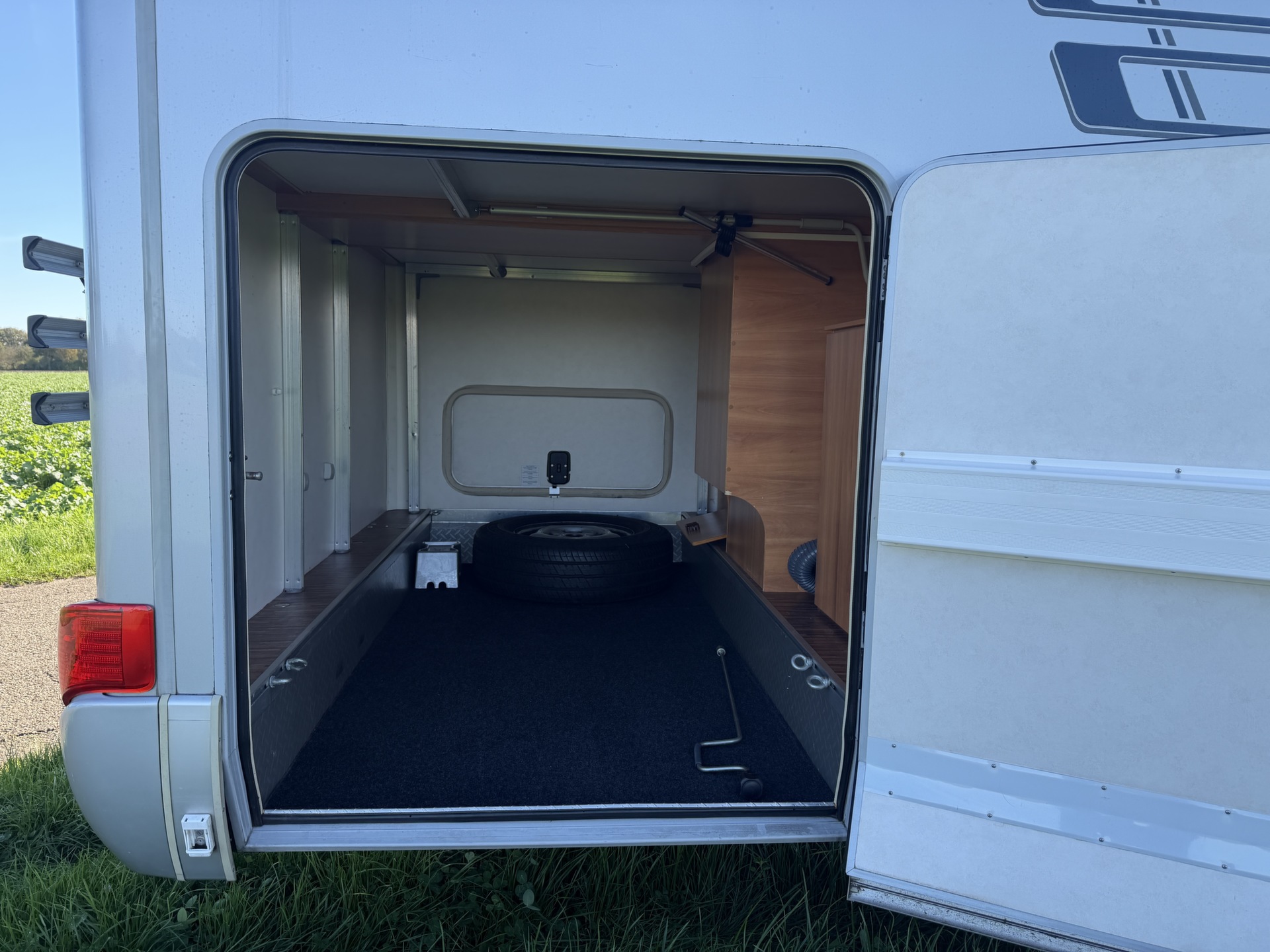voor bijvoorbeeld fietsen en ook rond de camper bevindt zich veel opbergruimte