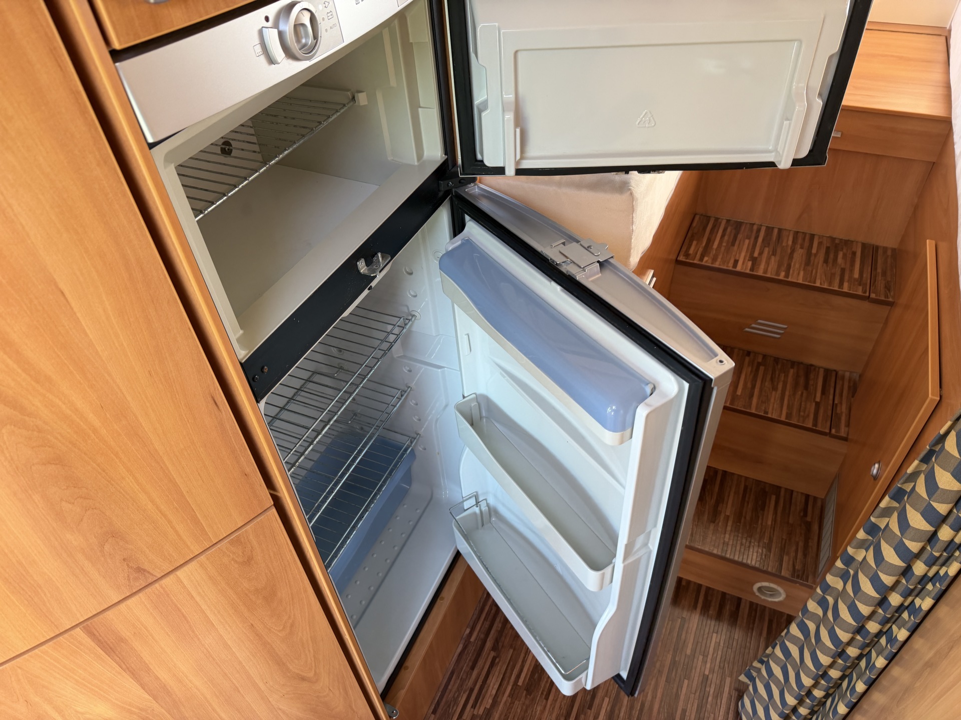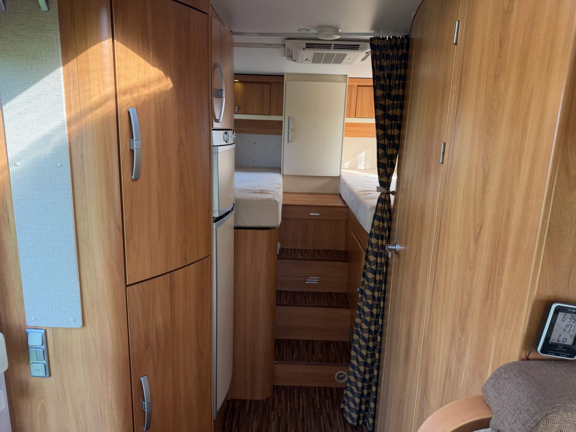 voorstoelen (pilotenstoelen), camera, xl koelkast, pliche gordijnen,
